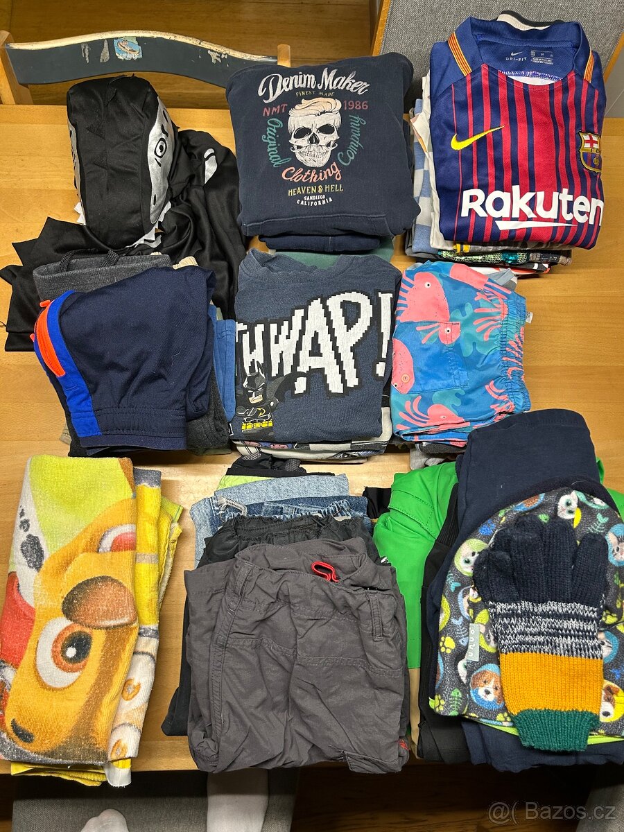 Obsah: 17x tricko, 6x mikina, svetr, 6x kalhoty, pyzama, plavky, 4x kratasy, 1x teplaky a 1x teplaky sportovni, 2x bunda, kalhoty Unuo, cepice, podvlekaci kalhoty, rucniky, outdoor vesta, kostym dinosaura