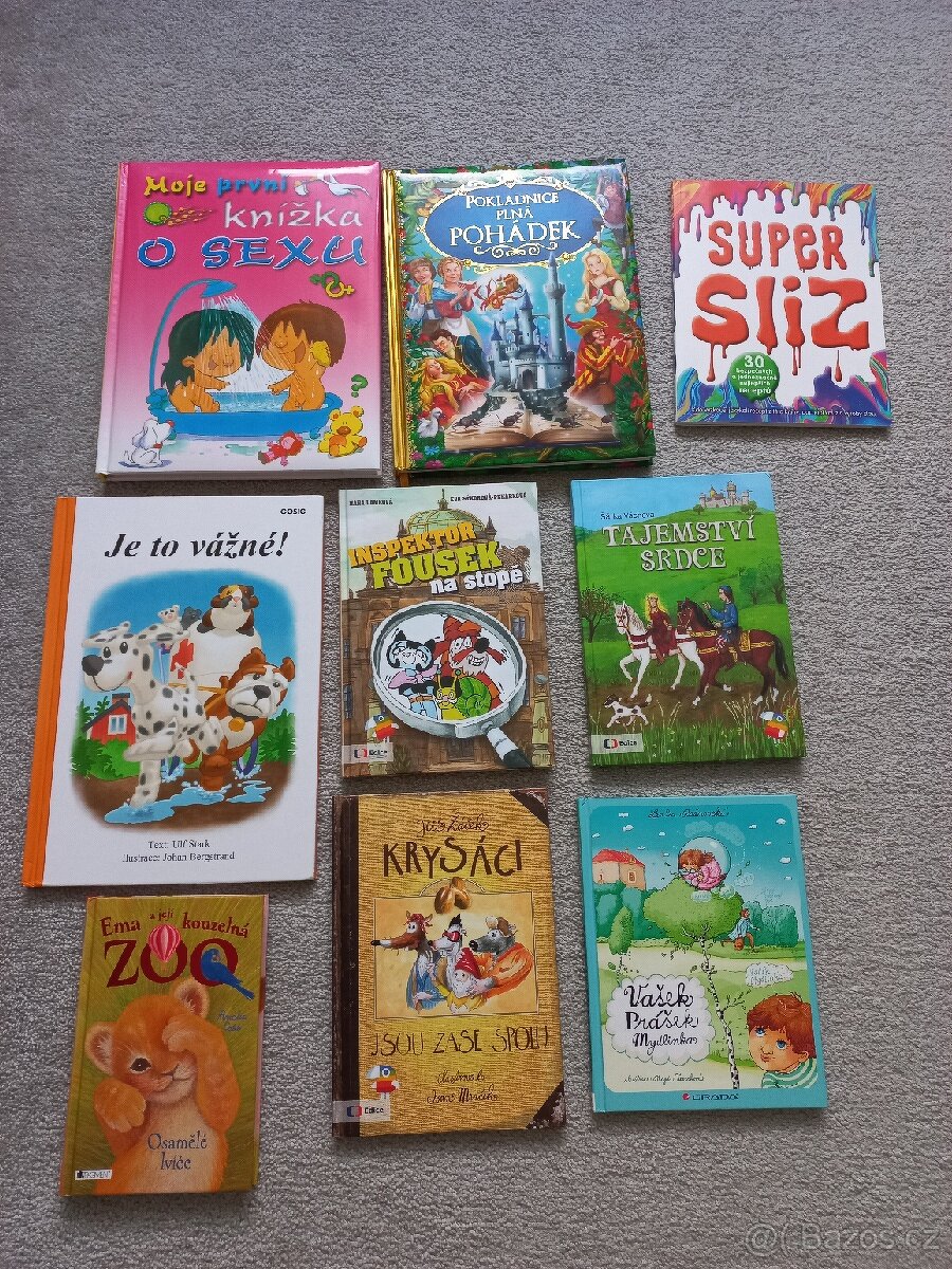 Knížka o sexu a Pokladnice plná pohádek každá za 120 Kč. Ostatní každá za 40 Kč.