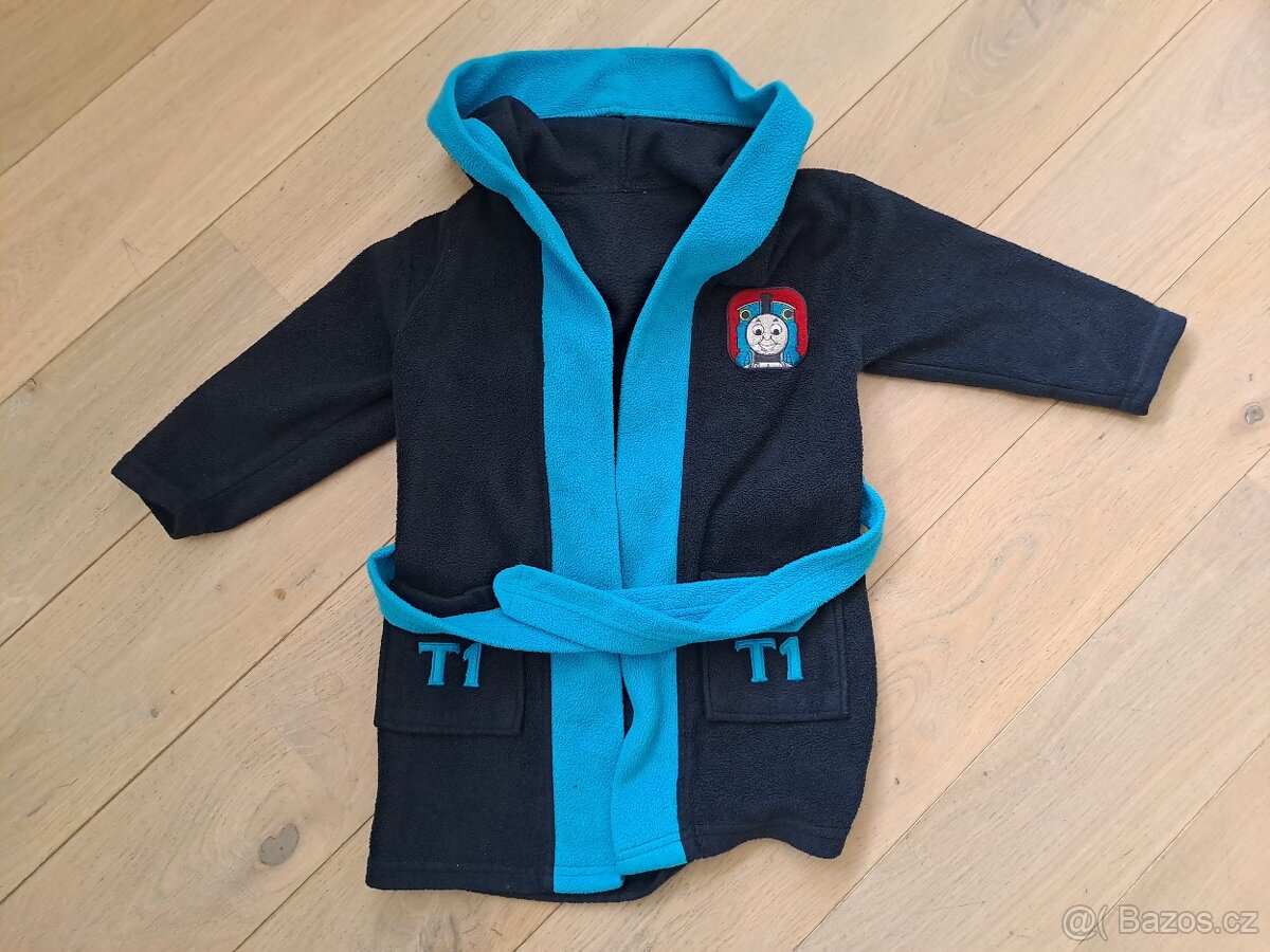 prodám dětské župánek s motivem mašinky Tomáše, tmavé modrý, bez označení velkosti, délka 55 cm, délka rukávu 29 cm, měli jsme asi do 4-5 let