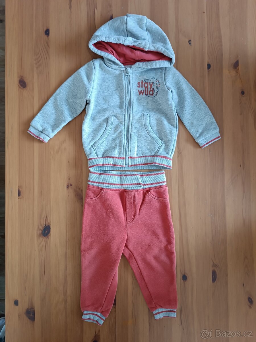 velikost 74/80, 9-12 měsíců, tepláky a mikina s kapucí, nošené, prací žmolky