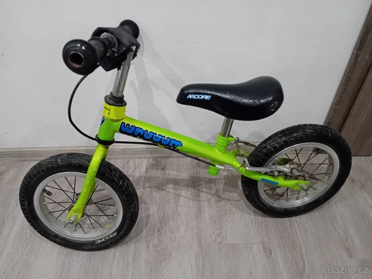Dětské odrážedlo Arcore WRUUUM pro nejmenší, vhodné k získání základních zkušeností k následné jízdě na kole. Na odrážedle jsou známky používání.
