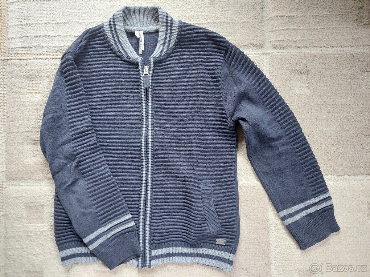 100% bavlna, uvedená velikost 128 (8 let), ale vydrží déle - odpovídá spíš 134, pěkný stav, zip bez problému funkční