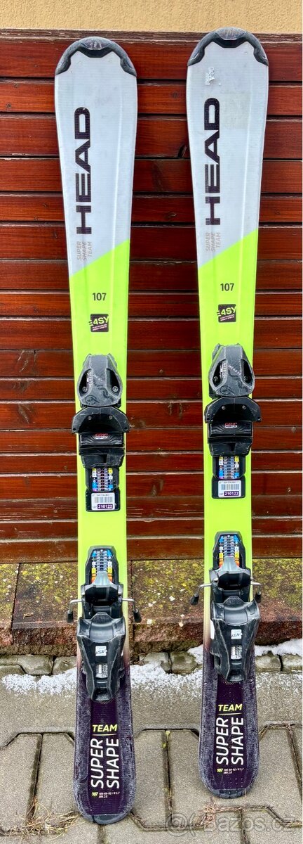 Prodám dětské lyže HEAD Super Shape 107cm. 106-66-92, R5,7m. Kupované předloni v bazaru za 2200-. Skluznice bez vrypů, pouze lehké škrábance. Vázání funguje bez problémů. Spolehlivé i na červených sjezdovkách.
