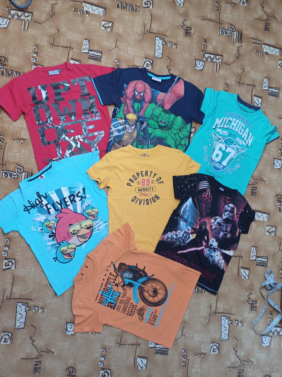 Prodám nošená trička vel.140/146, cena dohromady,červené, modré Angry birds a horní s Hulkem prodány, cena dohromady
