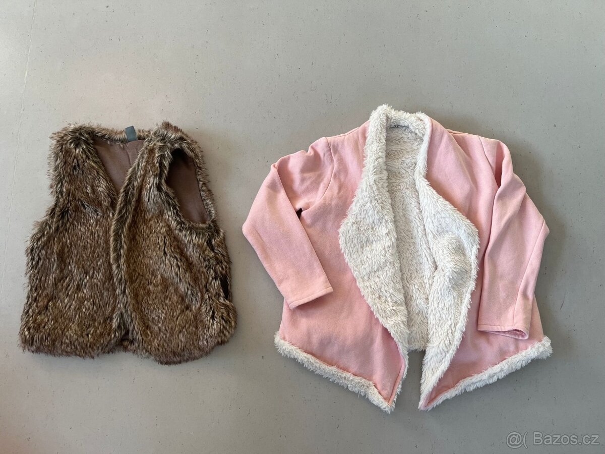 Prodám dívčí kardigan - chlupatý, krásně hřejivý, růžovo-bílý, vel. 8-10 let, zn. Pepperts a kožešinovou vestu Zara kids, vel. 134.