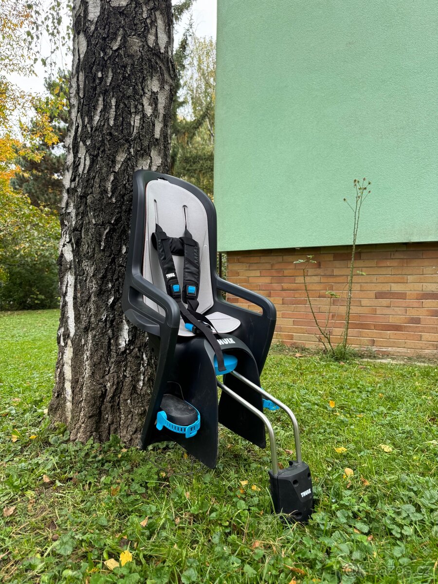 Zcela polohovatelná sedačka na kolo Thule Ride Along v TOP stavu. Sedačka lze vysouvat od sedátka a polohovat pro pohodlnou jízdu dítěte. Středové pásy a úchyty na nohy jsou nastavitelné. Nosnost do 22 kg.