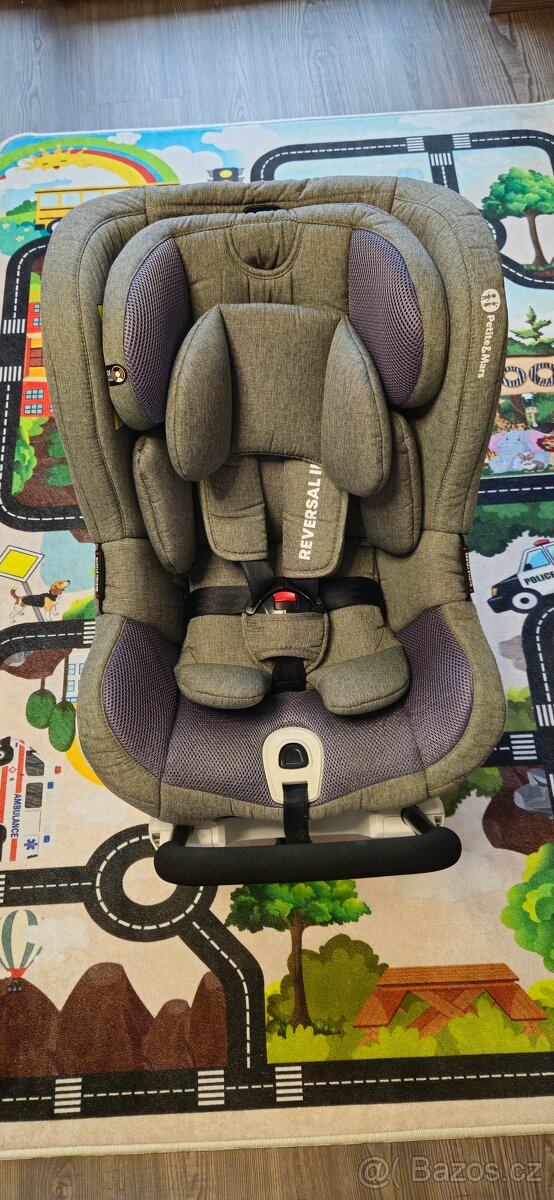 Prodám otočnou dětskou autosedačku české zn. Petite and Mars. Autosedačka je vhodná pro děti od 0 do 18 kg (cca do 4 let věku). Bezpečnost dále zajišťuje pětibodové bezpečnostní pásy. Autosedačku je možné otočit o 360° - po směru jízdy (skupina 1) nebo proti směru (skupina 0+). Možnost naklápění sedačky do 4 poloh. Opěrku hlavy je možné nastavit až do 7 poloh. Potah je snímatelný a pratelný.