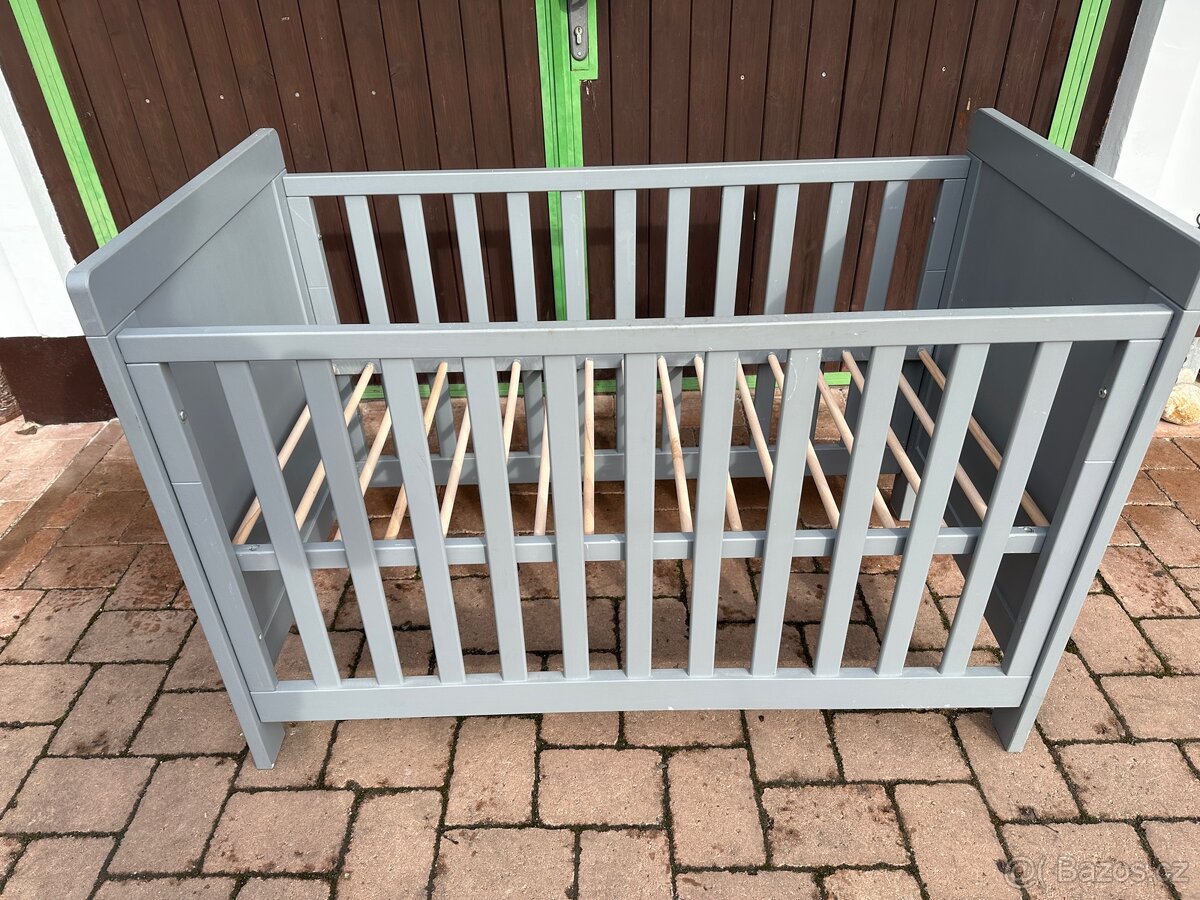 Prodám dětskou dřevěnou postýlku značky Bopita 120x60. Rošt možno nastavit do tří poloh. Matrace výška 11 cm, nepoškozena viz foto. Postýlka přetřena na šedou s povrchovýma oděrkama od používání. Dohoda možná.