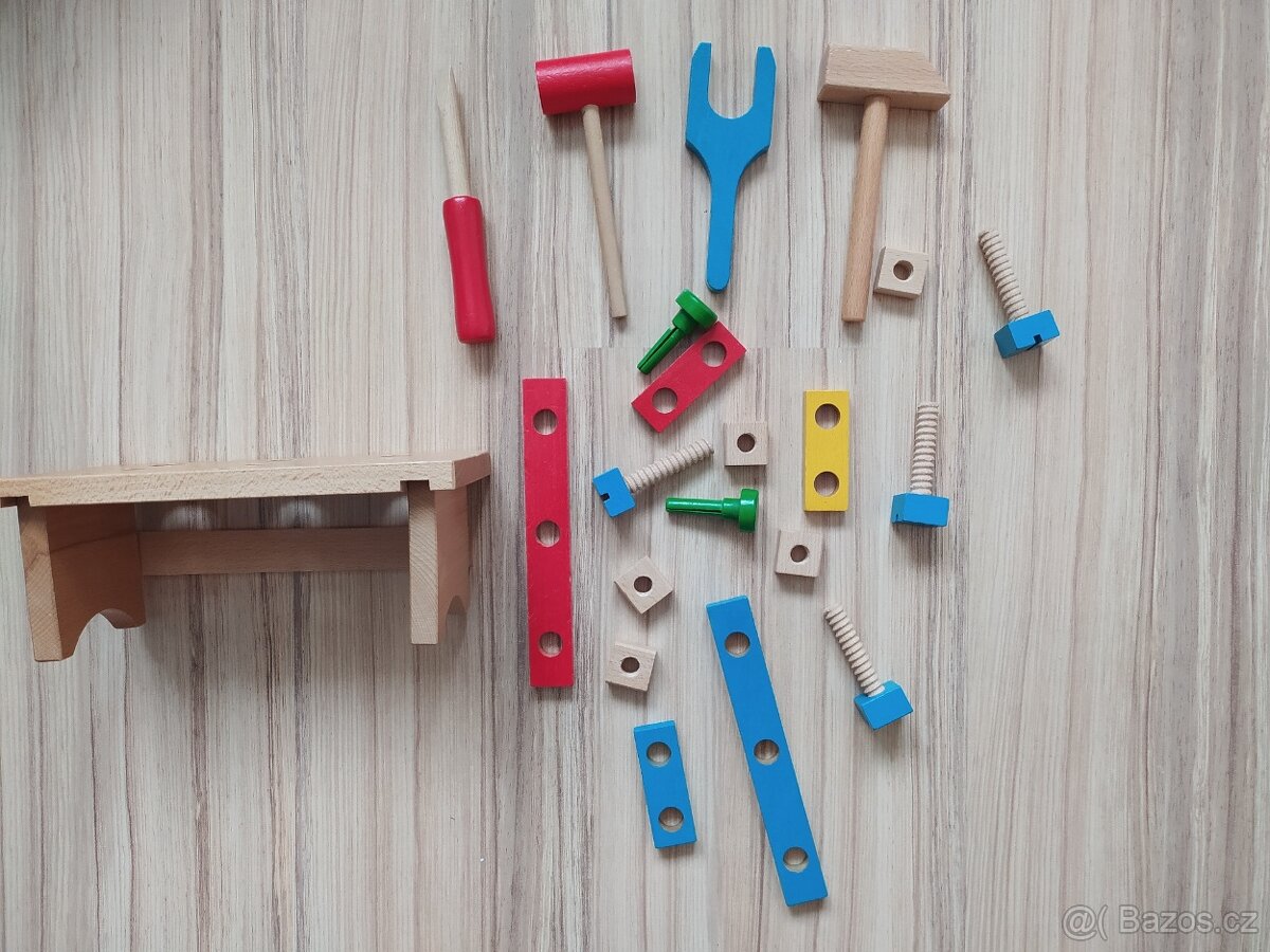 Nabízím Eichhorn - dřevěné nářadí, 20 kusová dětská dřevěná souprava nářadí včetně šroubku, kolíku, spojovacích dílů, stolečku........atd.
