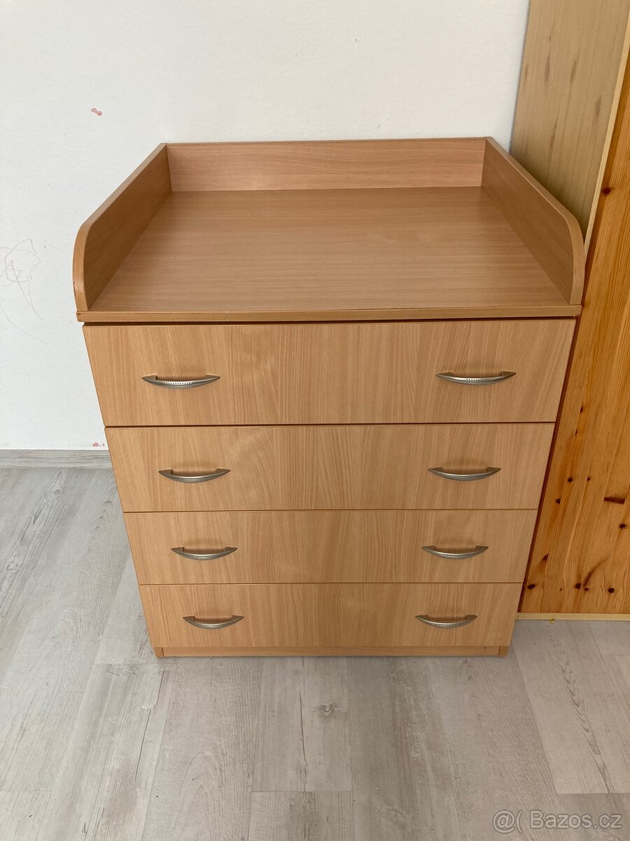 Přebalovací komoda/pult v dobrém stavu. Pult lze odmontovat a pak používat jen komodu. U komody chybí vrchní část, určitě lze sehnat, my nepotřebovali - měli jsme tam ten pult.