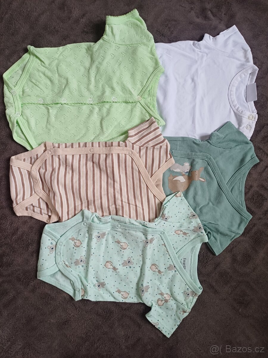 Značkové dětské body - krátký rukáv a trička 6 ks, 56 - [20.2. 2026]Prodám dětské body a trička po jednom chlapečkovi, téměř či zcela nenošené, nové. Celkem 6 kusů krásného, čistého, nepoškozeného dětského prádla v jemné neutrální barevnosti pro nejmenší miminka, Hodí se určitě i pro holčičku.