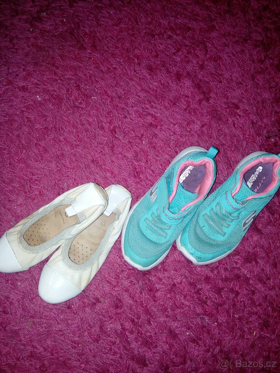 . Balerinky bílé barvy pružné kolem nártu nepadají z nohy 40 Kc a ZDARMA pridam botasky sv.modro.zelena barva ( vypadají dobře ale jsou trochu poškozené na pravé botě zřejmě od kola foto 3