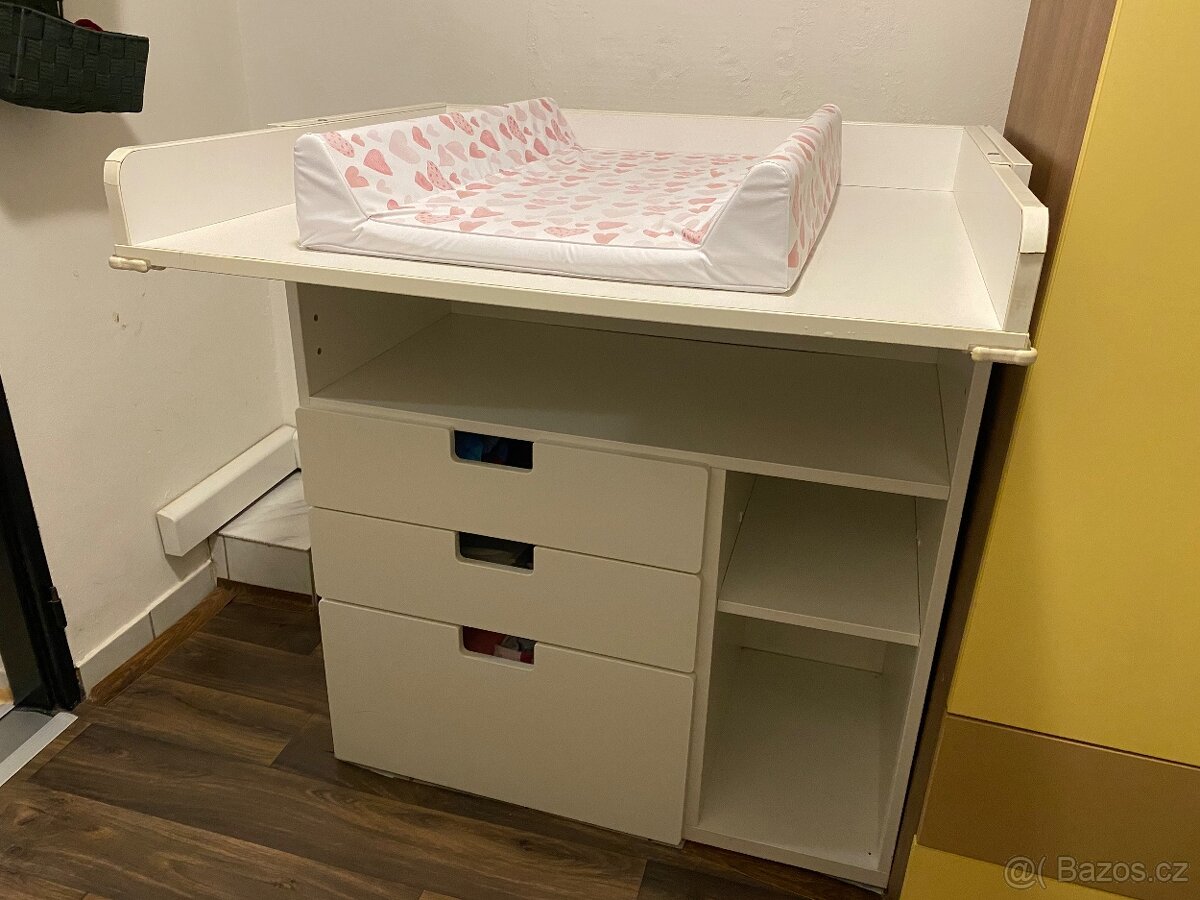 Prodám tento používaný přebalovací pult značky IKEA. Je tam hodně úložného prostoru a výškově nastavitelná část na přebalování.