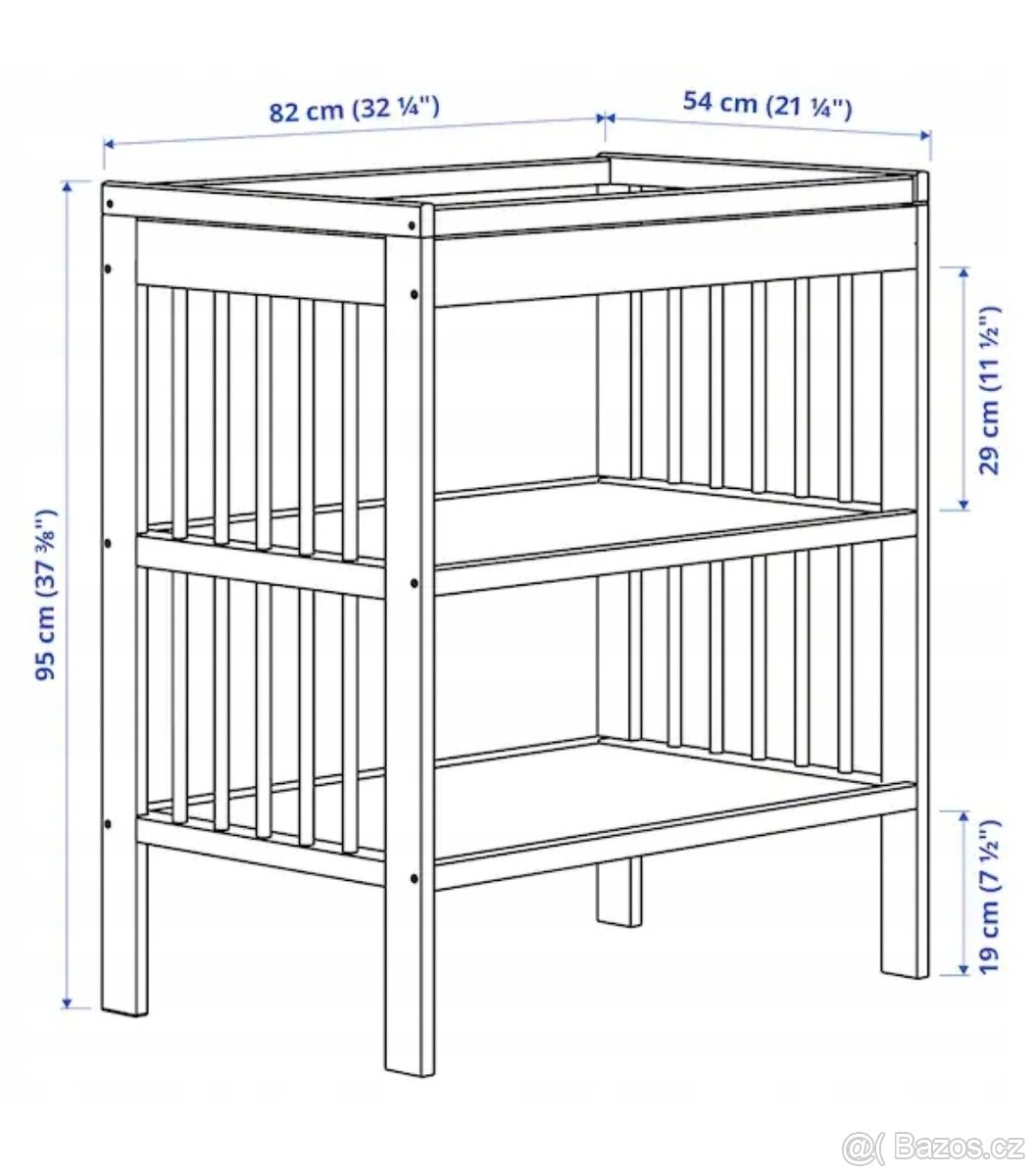 Přebalovací pult IKEA Gulliver - [17.2. 2026]Prodám přebalovací pult IKEA Gulliver. Nechám k tomu i novou přebalovací podložku a závěsné misky a odpadkový koš. Rozměry jsou na fotce. Osobní převzetí pouze ve Znojmě, neposílám.