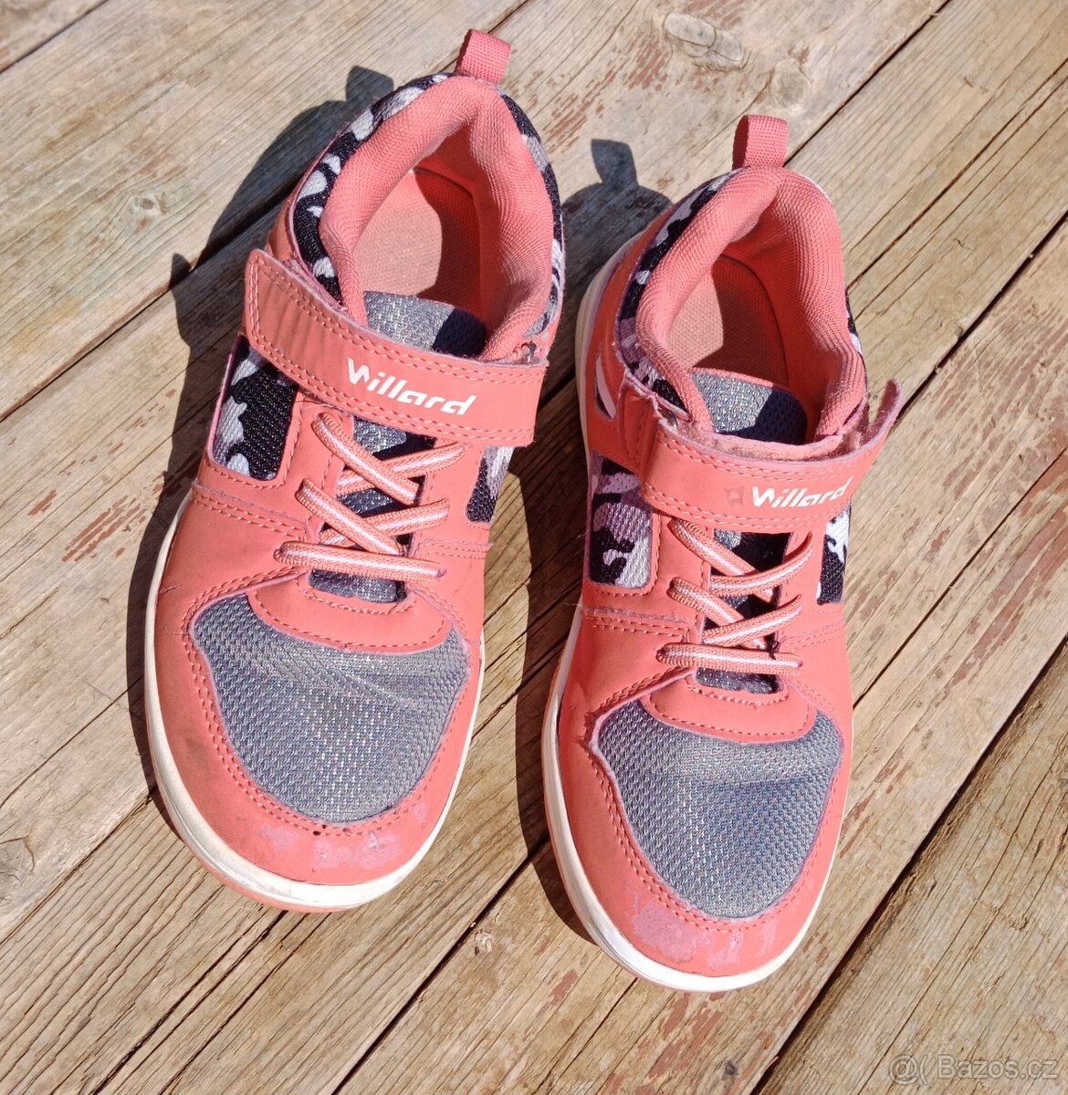 Daruji dětské tenisky Willard vel.35 délka stélky 23cm. Po jednom dítěti nošené v tělocviku. Lze předat na trase Vizovice-Zlín.