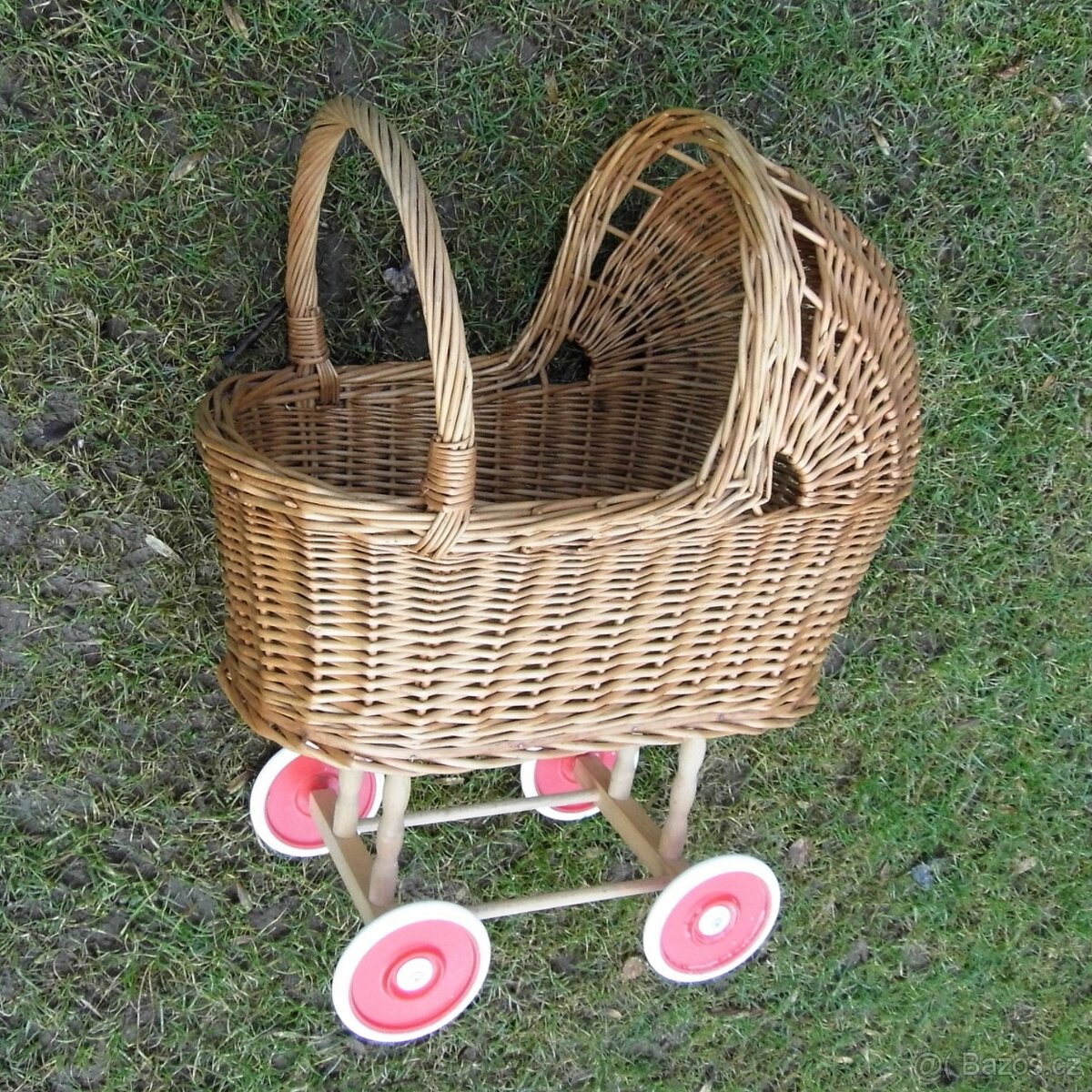 proutěný kočárek vhodný pro panenku do 45 cm nebo k dekoraci.