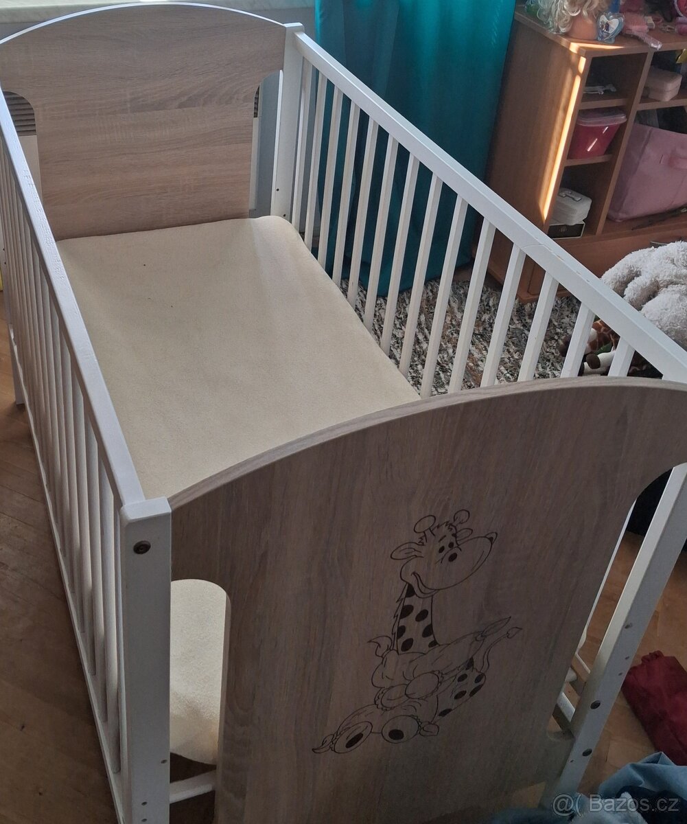 Dětská postýlka - [24.2. 2026]Prodám dětskou bílou postýlku se žirafou. Velikost postýlky 120x60, má 3 polohy roštu. K tomu matraci z kokosu, 2 nepropustná bílá prostěradla, set do postýlky (peřinku s polštárkem) vhodné pro alergiky a 2x povlečení viz.foto.