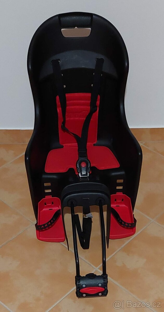 Prodám používanou dětskou samonosnou sedačku na kolo Polisport Boodie, nosnost 22kg, tříbodový pás, . Montáž na sedlovou rámovou trubku kruhového i oválného průměru 28 až 40 mm.