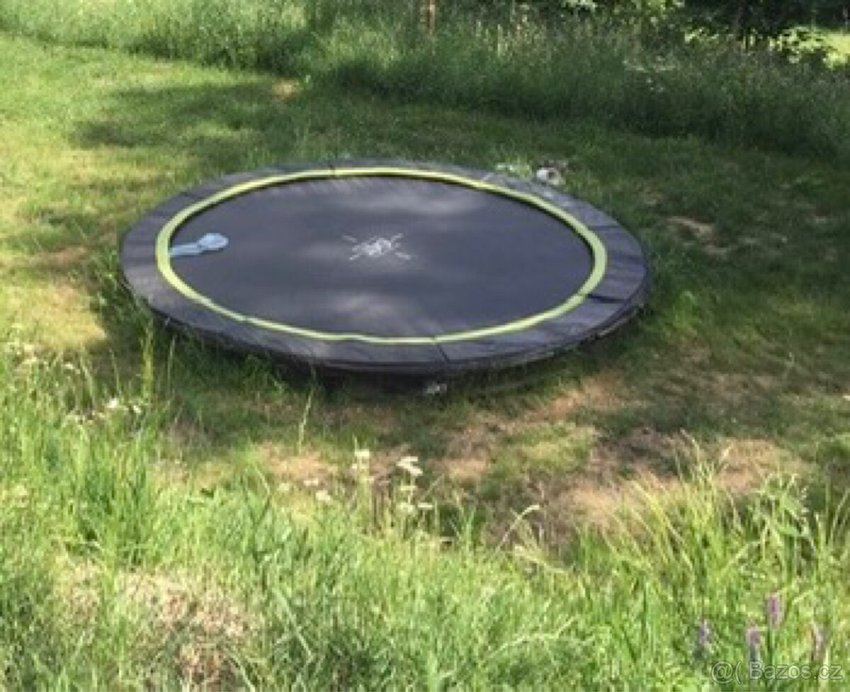 Prodám trampolínu do země Exit Silhoutte Ground o průměru 3 metry. Trampolína je jenom pár centimetrů nad zemí. Je třeba pod ní vykopat díru. Je v dobrém stavu, má nový ochranný kryt pružin. Pružiny jsou trochu orezlé, na funkci to nemá vliv. Pouze osobní odběr Praha nebo okolí Jablonce nad Nisou.