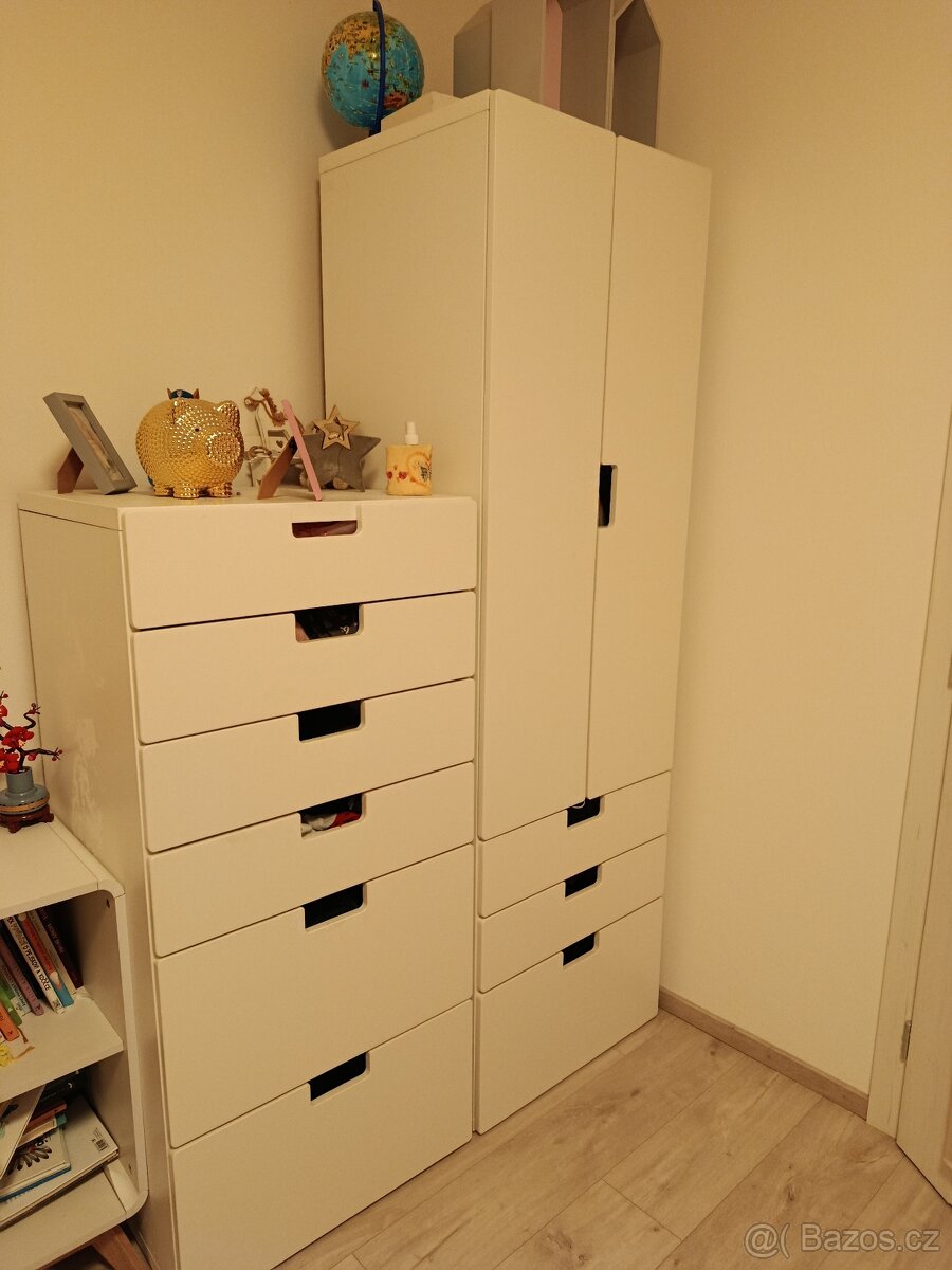 Prodám skříně tři kusy a stůl z Ikea. Používané. Jedna skříň z boku a ze zhora poškozený lak, může se obrousit a natřít.