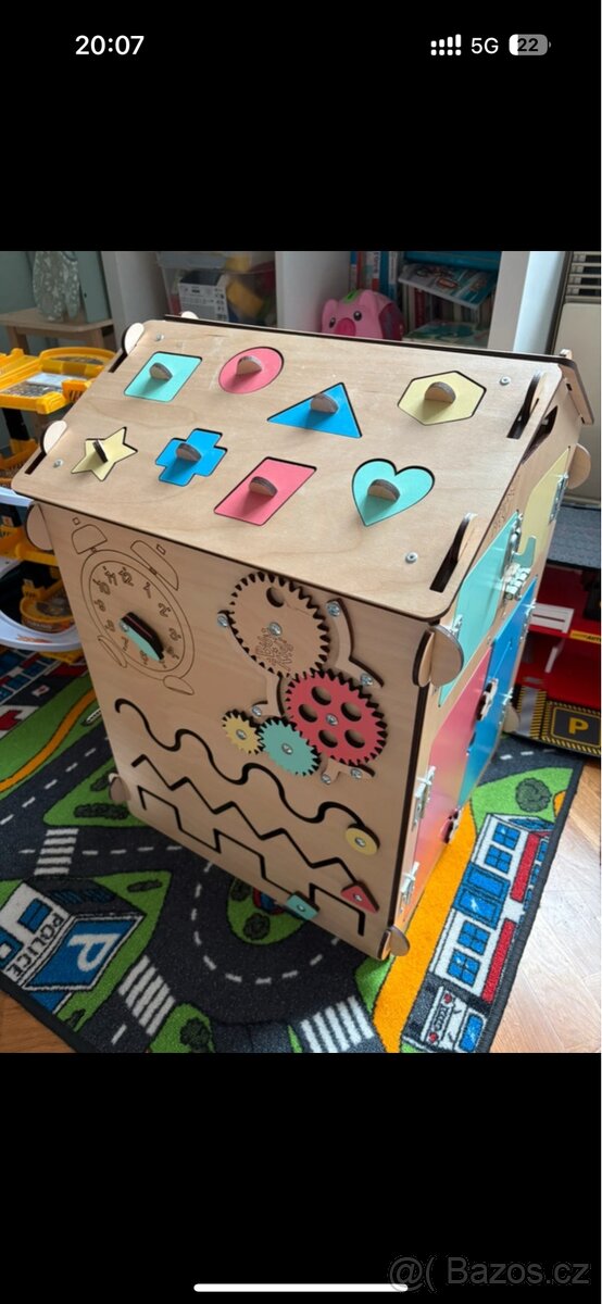 Activity board - domeček - [22.2. 2026]Interaktivní dřevěný domeček Elis design. Velice zachovalý, chybí jen jedna kostička viz foto.