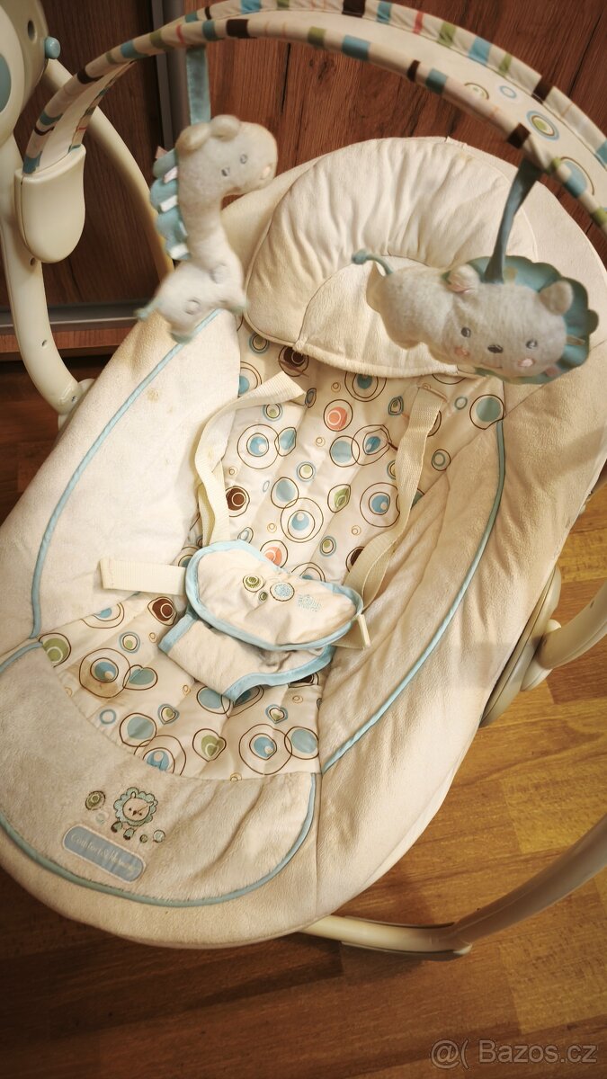 Prodám houpající lehátko pro mimčo. Regulace zvuku a pohybu rychlosti,na baterie. Občasně se může zastavit,je třeba trochu seřídit otočným ovladačem. Ideální osobní předání.