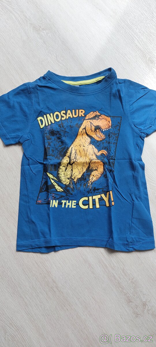 Modré, v pořádku, obrázek celý nesloupaný, triko bez děr a bez fleků