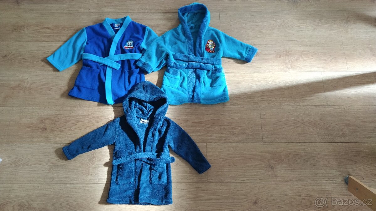 Tři dětské župany velikost 18-24 měsíců, ale vydrží určitě déle.