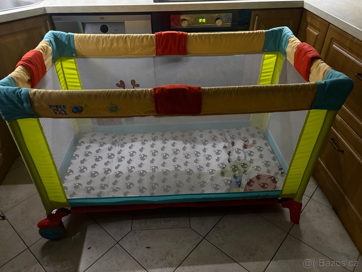 Cestovni postylka pro novorozence - [23.2. 2026]Od 0 do 1roku. Uzasne skladna, mala, lehka. Soucasti je decka, hracky zavesene na hrani, sitka proti hmyzu. Rozmer rozlozena 80x65, Slozena 65x37. Jevi znamky pouzivani v pantech pro zvednuti - natrzena latka. Jinak je plne funkcni a muze byt i umist ...