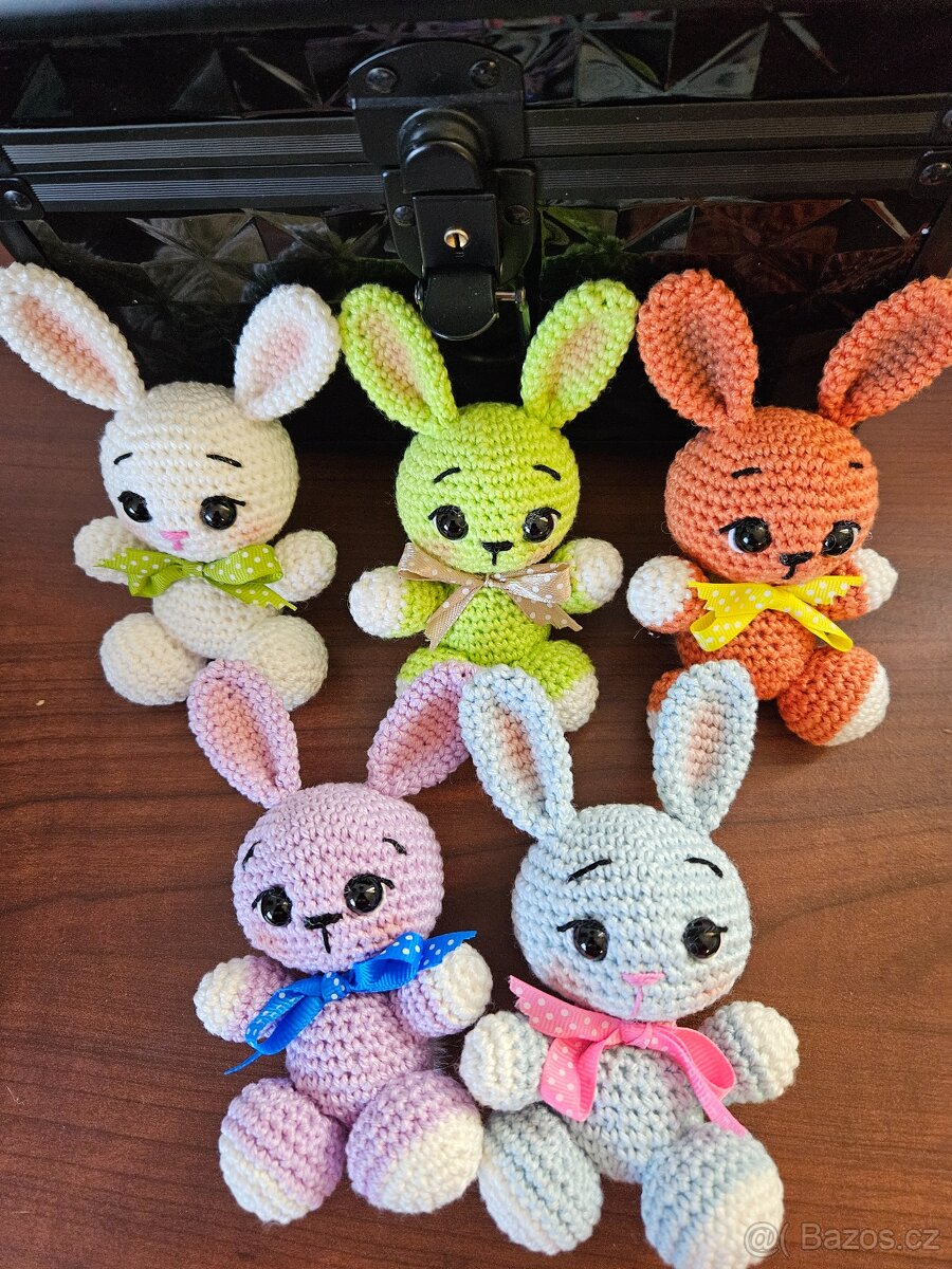 Háčkovaná zvířátka a tulipánky, výška cca 15 cm.