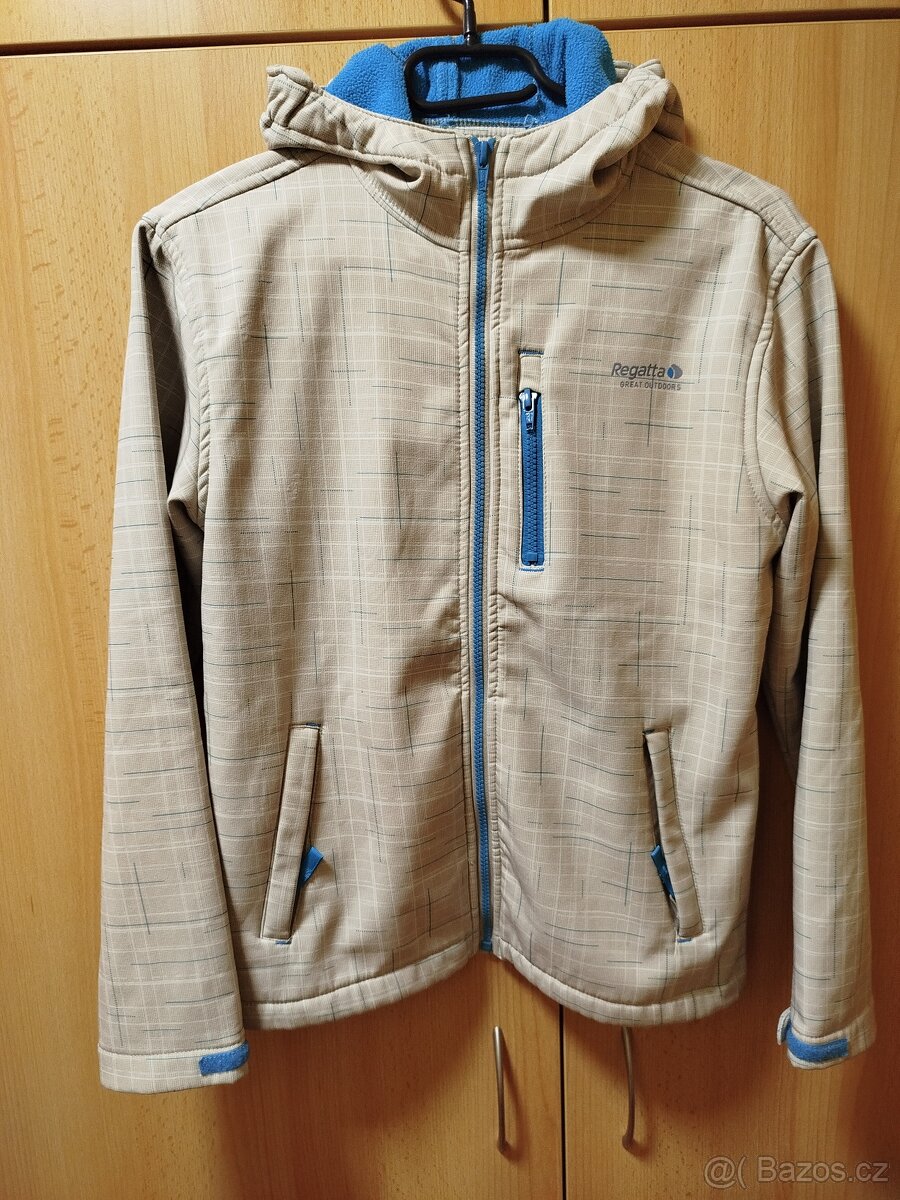 dívčí softshellová bunda Regatta vel.152/157, cell.délka 58,5cm, délka ruk.od ramene 55,5cm, šířka měřená v podpaží 46,5cm, nošená, ale v dobrém stavu, pouze na pravém zápěstí je uvolněný šev u suchého zipu, viz. foto