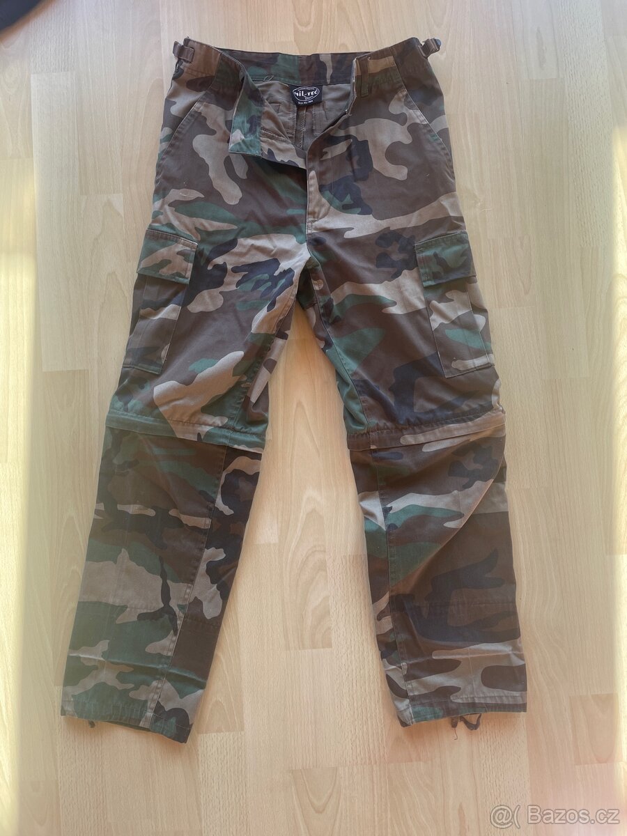 Maskáčové kalhoty - max délka 79,5 cm, délka rozkroku 32 cm - 120 Kč