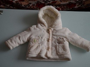 Prodám úžasný bílý zimní kabátek s jemnými vzory zvířátek, kapuce má kožešinku, na kabátku jsou kapsičky, TOP stav. Věk 6-12 měsíců.