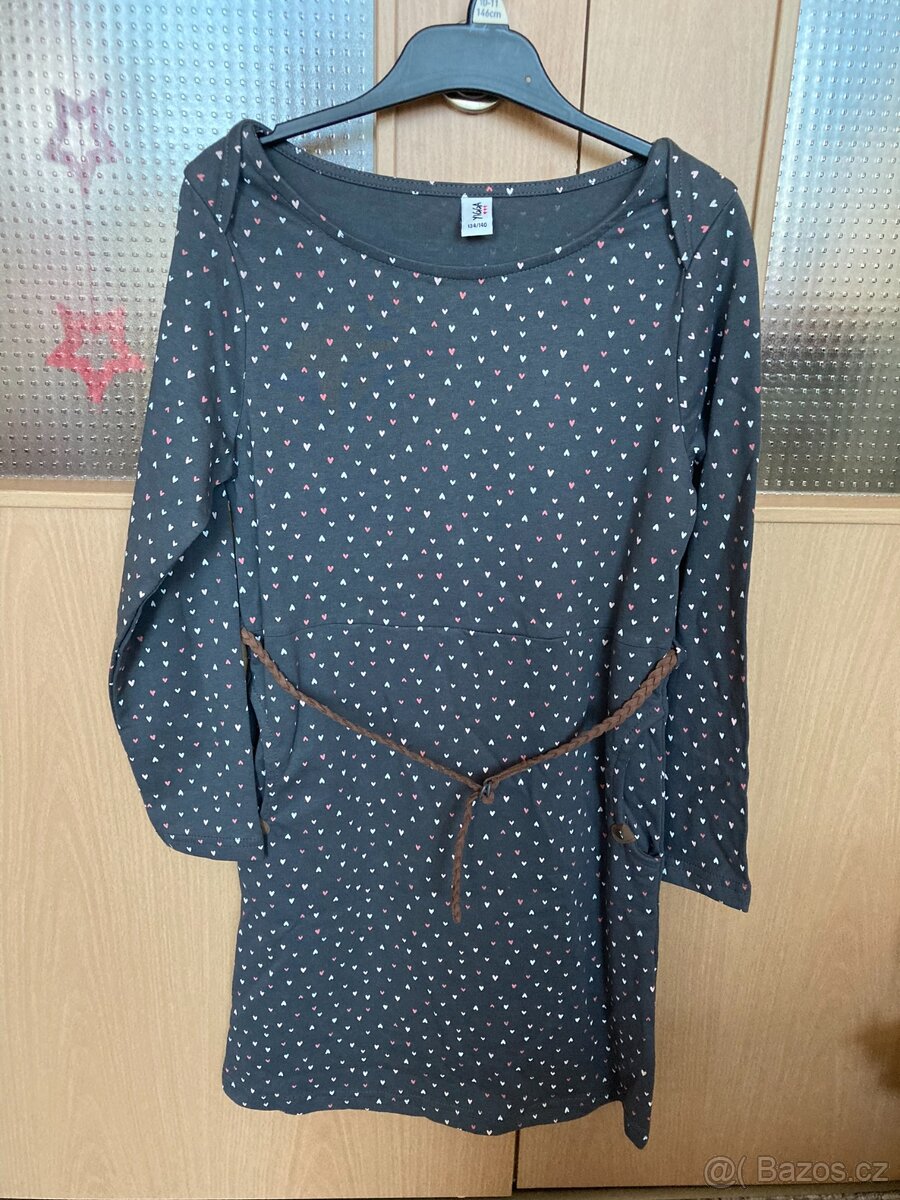 velmi málo nošené, lodičkový výstřih, pásek, 2 kapsy. Rozměry v cm: délka 75, rukáv 49, šířka 37. Cena 165,- Kč + poštovné
