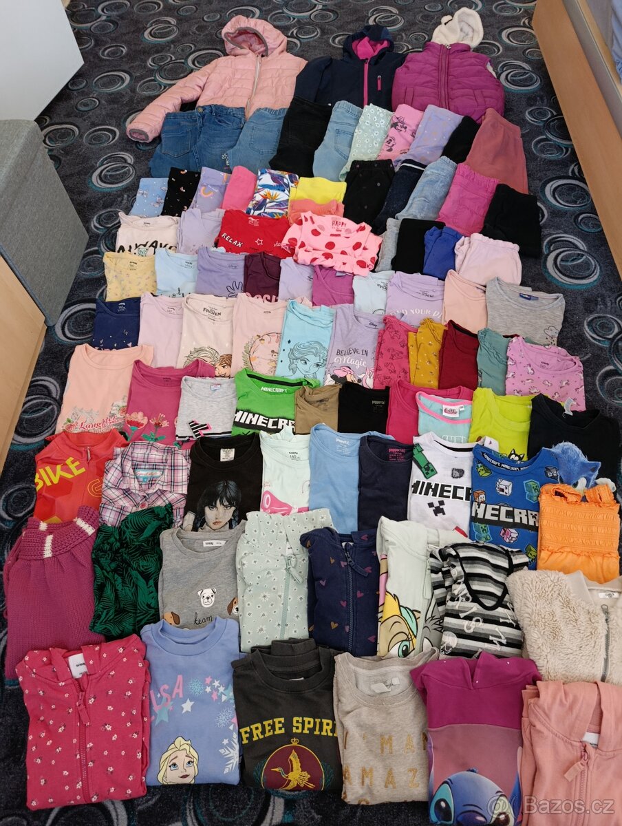 Prodám set dětského oblečení pro holku 8-10 roků, který obsahuje: 2xbundu,vestu,5xrifle,8xteplaky, 5xleginy,6xkratase,3xpyžamo, 2xsukně,21xtriko s dlouhým rukávem,18xtriko s krátkým rukávem, košile,3xšaty,15xmikina. Celkem je to 90 kusů oblečení
