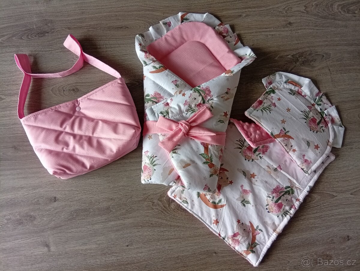 Souprava pro panenky - [5.2. 2026]Zavinovačka 55x55 cm... plněna 200 g vatelinem ..na suchý zip a mašlí.....160 Kč