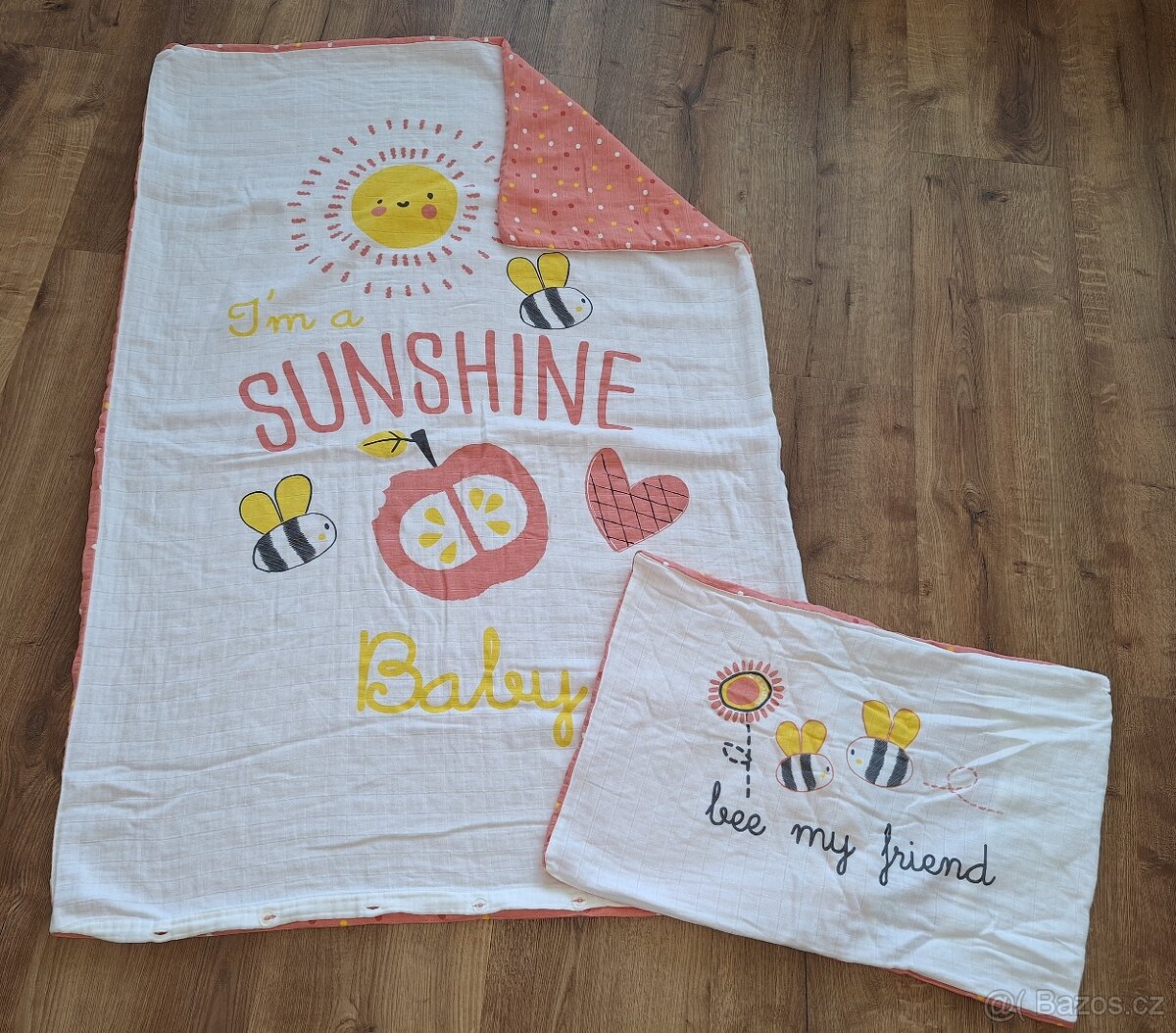 Prodám povlečení do postýlky včetně peřinky, polštářku, prostěradla a ochrany matrace.