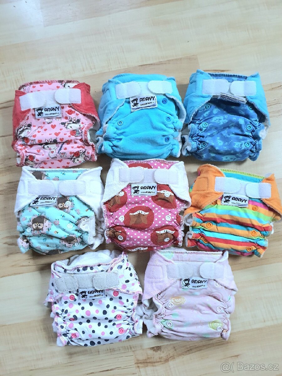 Nabízím sadu kalhotkových látkových plen české značky Anavy. Plenky jsou z bambusového froté, krásně savé. Plenky jsou ve výborném stavu bez vad, suché zipy v pořádku. Jedna je starší, více používaná a má zašité dírky na barevné části (puntíkovaná). V případě koupě všech ostatních plen ji dám zdarma.
