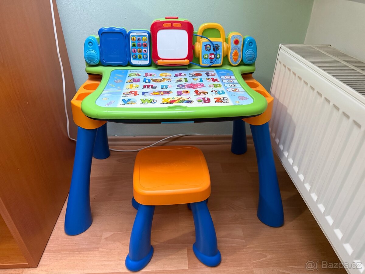 Multifunkční stolek se spoustou aplikací a stěídatelných vložek rozvíjející dětskou anglickou slovní zásobu, představivost, vědomosti a spoustu dašího. Přivezeno z Velké Británie. Obsahuje také vestavěný malýmpočítač s dotekovou tužkou, díky vyměnitelným vsadkám dítě objevuje svět. Velmi přitažlivá pracovní hračka. Bezvadný stav. Více info na vyžádání. PC 2200 Kč. Dostupné v originální krabici! Vhodné jako dárek k Ježíšku. Napájení: 4xAA baterie (tužkové). Dlouho vydrží.