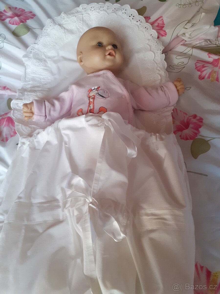Prodám retro zavinovačku, skoro jako nová, málo používaná, 350 Kč, prodej bez panenky, košilky kojenecké, plátěné, 40 Kč za jednu, čepičky 40 Kč za jednu