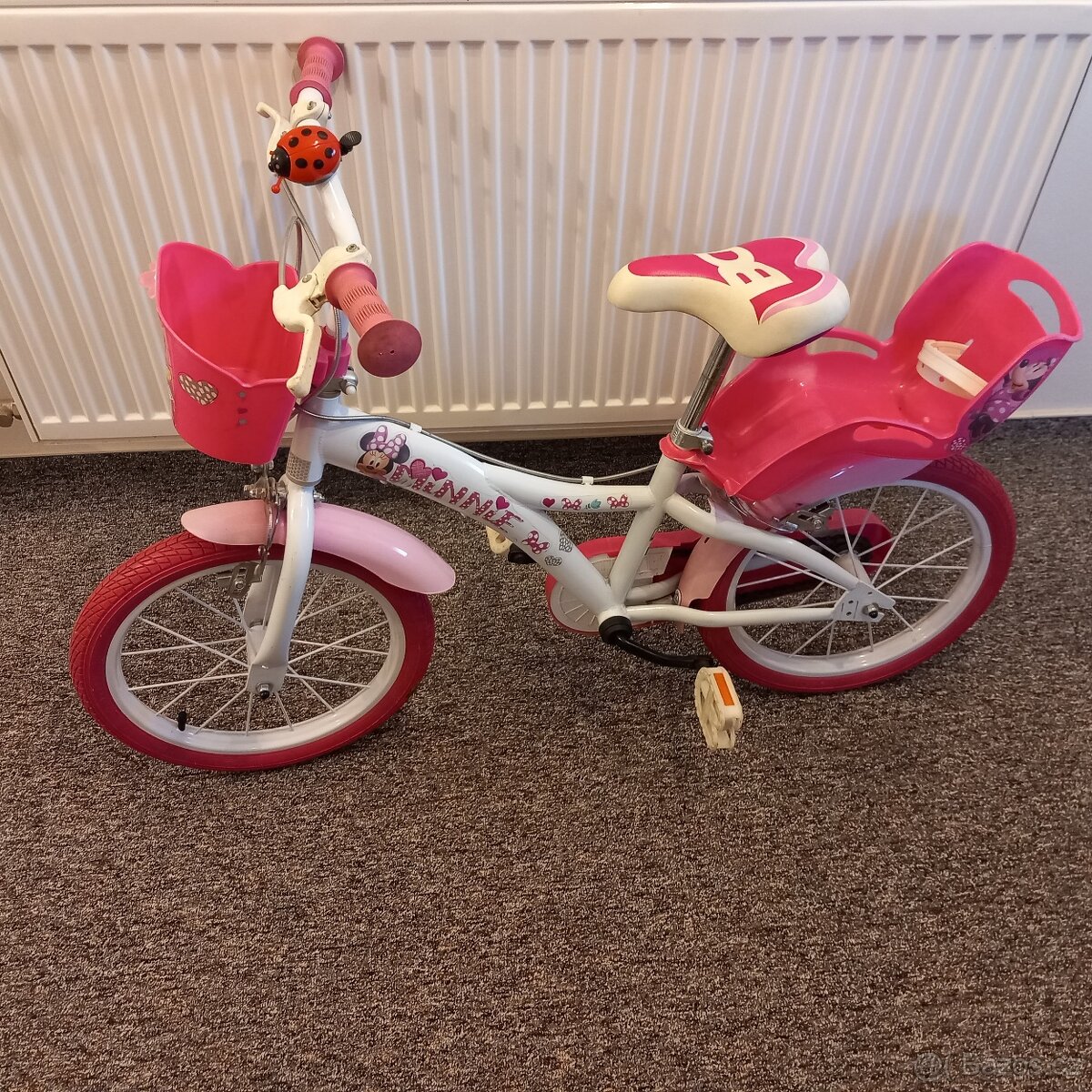 Dětské dívčí kolo s Minnie velikost kol 16", možnost namontovat boční kolečka viz foto. Kolo bylo zakoupené nové, a užívané pouze jednou dcerou, takže slušný stav. Cena kola je 1600,- Kč + nabízím i helmu také ve slušném stavu za 300,- Kč, ale kolo lze koupit i samostatně bez helmy.