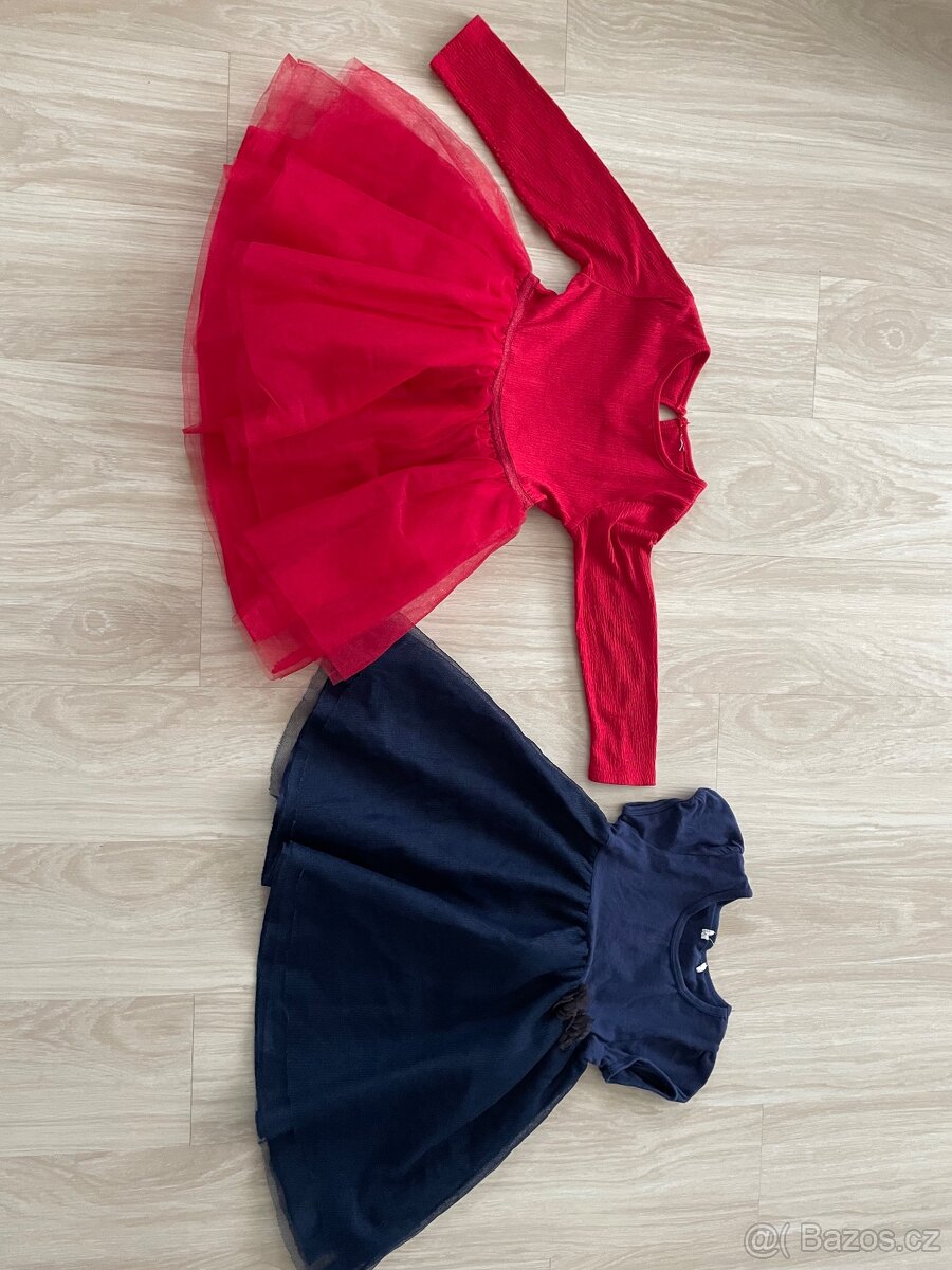 prodám po dceři v dobrém stavu nošené šaty, vel. 98. Kupované na focení už z druhé ruky, ale určitě ještě poslouží. Štítky jsou odstřižené, ale myslím, že červené byly H&M. Tmavě modré nevím.