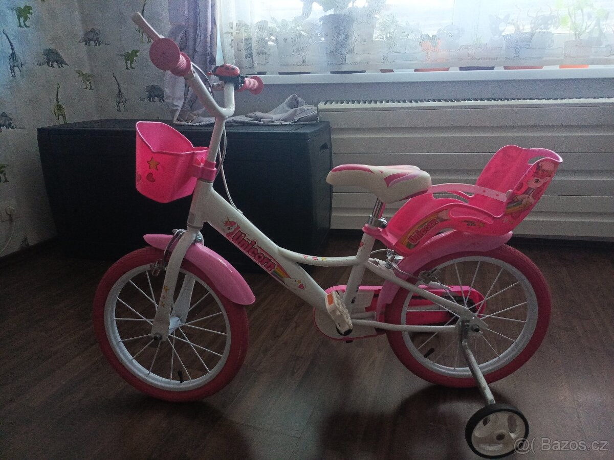 Prodám dívčí růžové kolo skoro jako nové párkrát ježděné v top stavu. Velikost 16 značka Dino Bikes Unicorn.