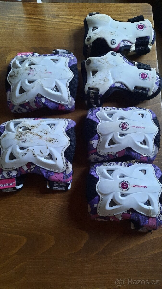 Chrániče na inline bruslení S (+jedny navíc M) - [7.2. 2026]Prodám tyto dětské chrániče na zápěstí, lokty a kolena