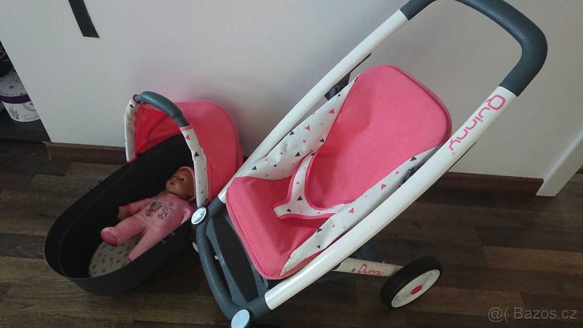 Prodám kočárek pro panenku Smoby Quinny 2 v 1. Otočná kolečka, pěkný i s panenkou. Pouze osobní odběr.