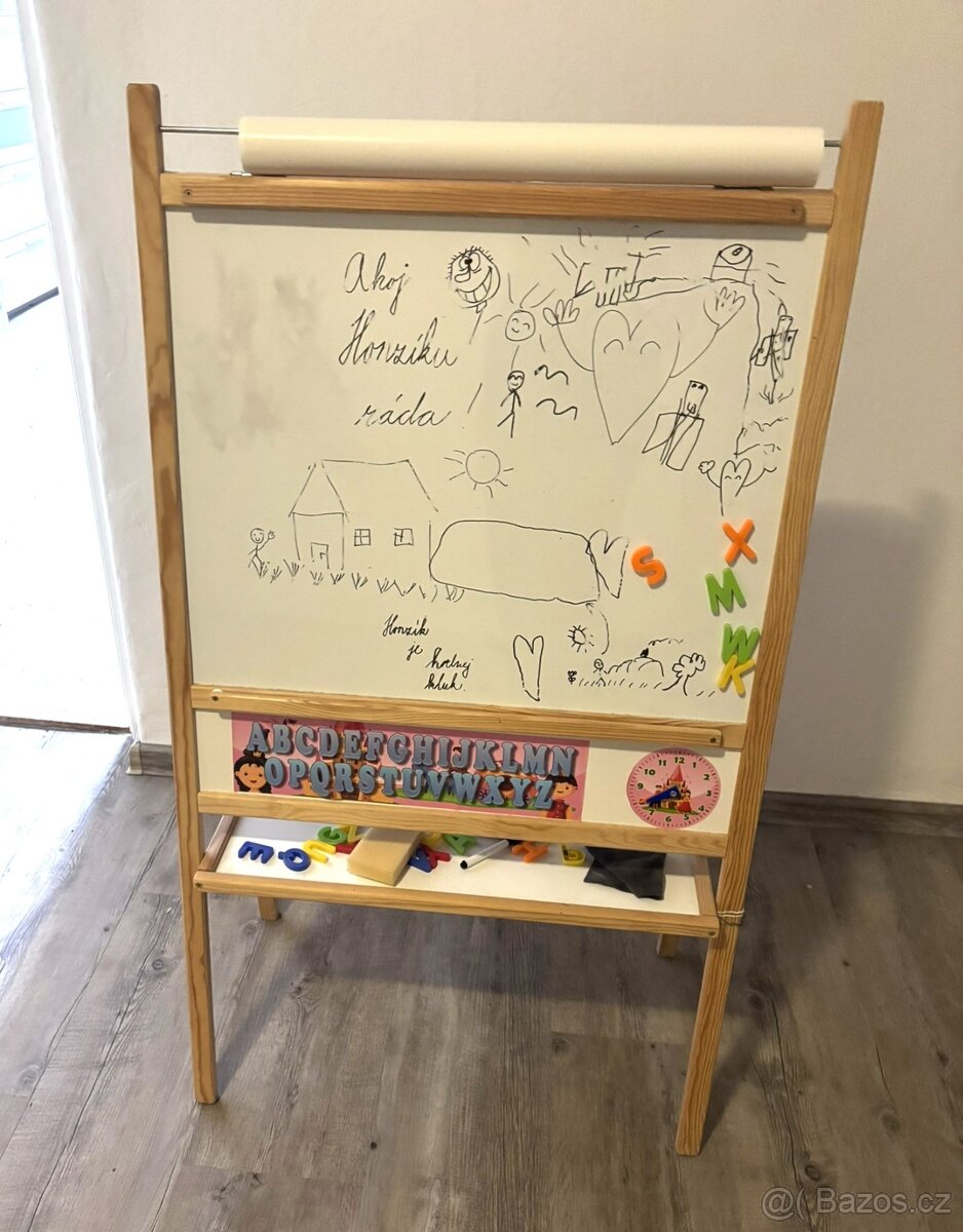 Prodám krásnou dřevěnou dětskou tabuli, která zabaví děti na dlouhé hodiny. Ideální pro kreslení, první písmenka, počítání i kreativní hry.