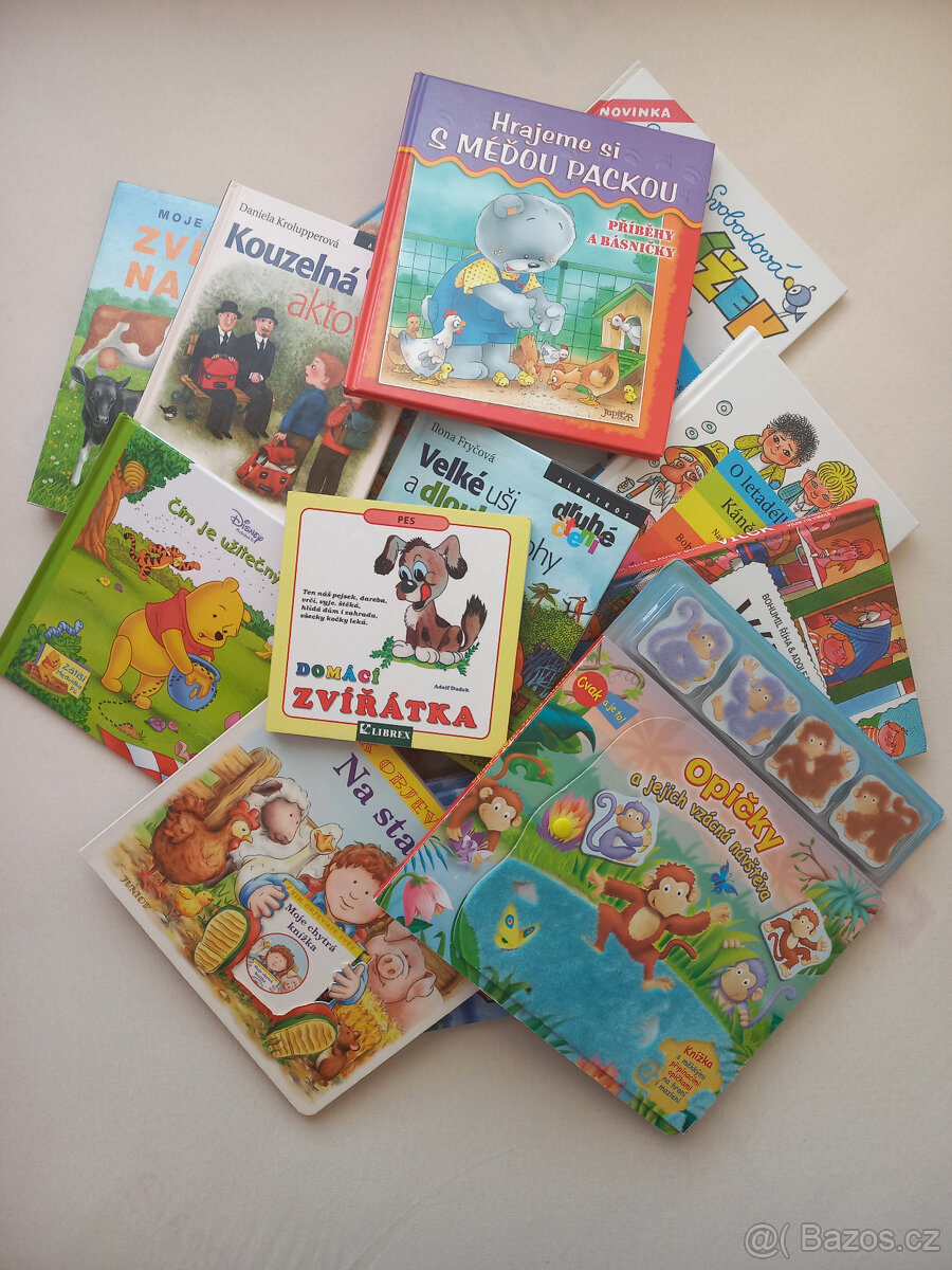 Foto č. 2 a 3 : O letadélku Káněti - 1x přečtená, jako nová. Cena 120,- Kč. Vítek (je to trojkniha) - 1x přečtená, jako nová. 150,- Kč. Velké uši a dlouhé nohy - PRODÁNO. Kouzelná aktovka - PRODÁNO. Foto č. 4 : Koblížek (s obr. Miloše Nesvadby) - 1x přečtená, jako nová. 90,- Kč. Cipískova loupežnická knížka (z Alberta) - NOVÁ, nepoužitá. Cena 70,- Kč. Čím je užitečný hmyz (s medvídkem Pú) - PRODÁNO. Chlupáček a ježek - jako nová. Cena 20,- Kč. Foto č. 5 a 6 : Příběhy hraček ve škole a jiná dobrodružství (první čtení) - PRODÁNO. Hrajeme si s méďou Packou - nepoškozená. Cena 50,- Kč. Otík objevuje svět - Na statku, nepoškozená. Cena 50,- Kč. Foto č. 7 a 8 : Opičky a jejich vzácná návštěva (obsahuje měkké připínací opičky) - jako nová. Cena 70,- Kč. Foto č. 9 a 10 : Strč prst skrz krk (logopedické říkanky, jazykolamy, úkoly) - PRODÁNO. Domácí zvířátka - Cena 20,- Kč. Odběr možný v Plzni (lze i poslat - k ceně + poštovné). V případě vážného zájmu prosím o kontakt přes mail nebo volat (ne SMS).