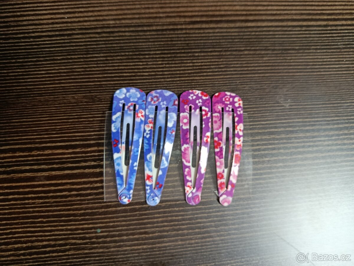 Sponky do vlasů, fialové a modré s kytkami