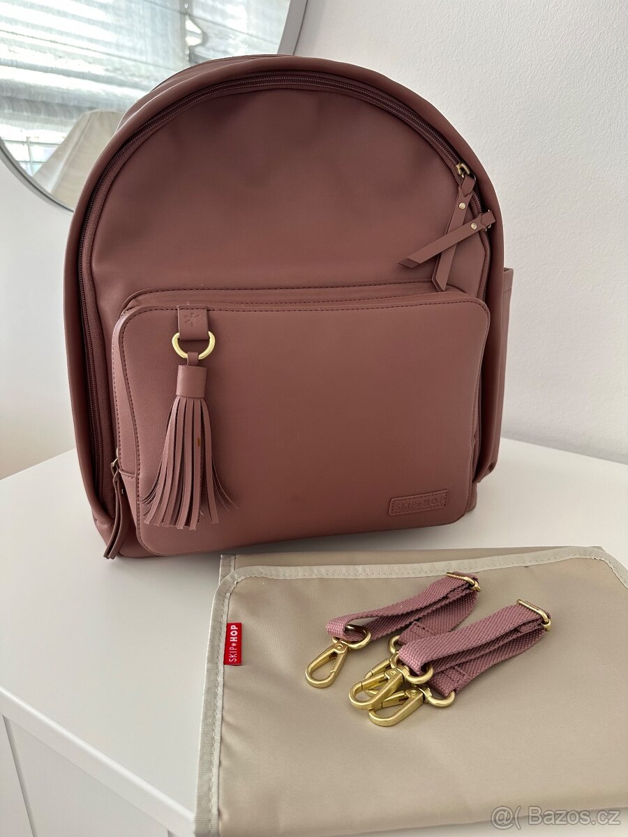 PRODÁM přebalovací batoh značky Skip Hop, z eko-kůže, v tmavě pudrové růžové barvě. Velmi prostorný, pojme hodně věcí pro miminko. Součástí nová skládací polstrovaná přebalovací podložka a nové popruhy k zavěšení na kočárek. Nošený, ale stále v super stavu, uvnitř čistý bez fleků. Jedinou vadou na kráse je malá oděrka na horní straně (viz poslední foto).