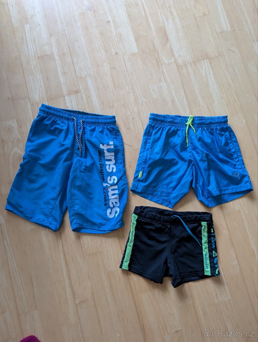 3 ks chlapecké plavky vel.146-152 modré, 6-9 let černé